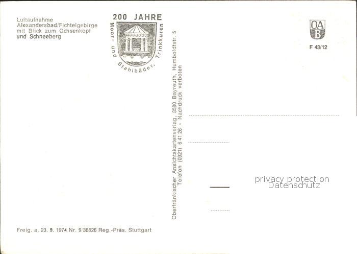 72050814 Alexandersbad Bad Ochsenkopf Schneeberg postalisch nicht gelaufen Erhaltung siehe scans KatCode: 11110009479111