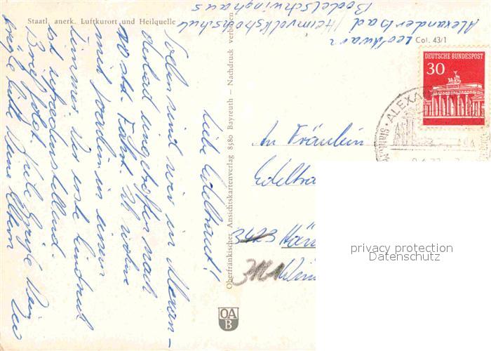 72631184 alte Postkarte Alexandersbad Bad postalisch gelaufen Erhaltung siehe scans [NatalD47] KatCode: 11110009479111