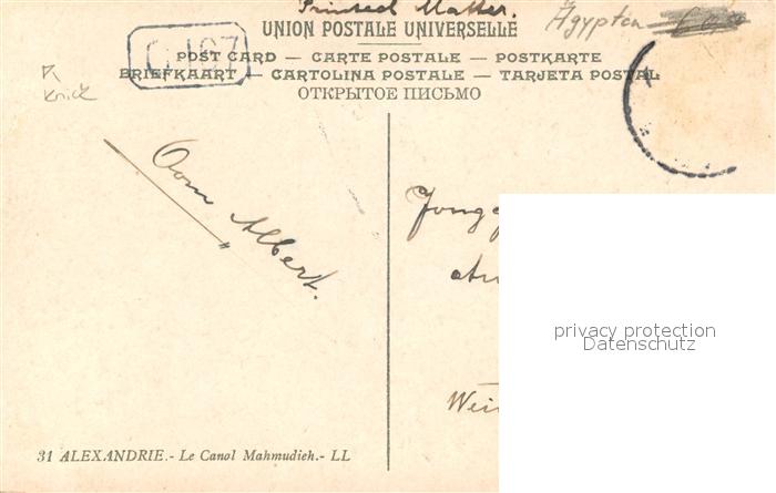 alte Postkarte Alexandria Alexandrie Aegypten Mahmudich Canal postalisch gelaufen Erhaltung siehe scans [KathaD81]