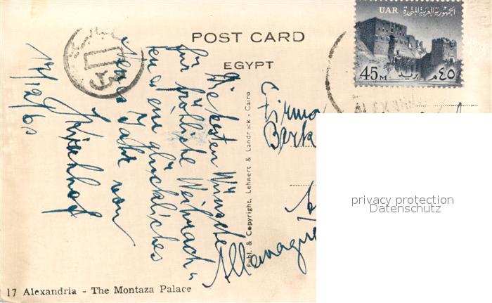 old postcard Alexandria Alexandrie Aegypten Montaza Palace postalisch gelaufen Erhaltung siehe scans [KathaD81]