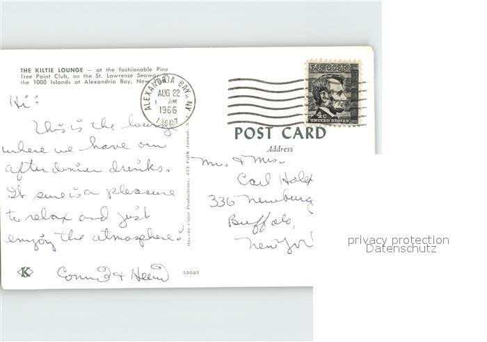 71990545 old postcard Alexandria Bay The Kiltie Lounge postalisch gelaufen Erhaltung siehe scans KatCode: 14140340000000