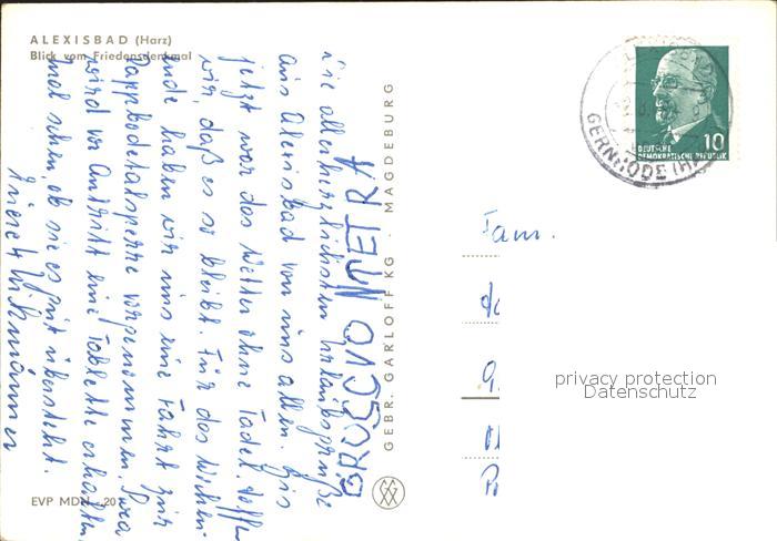 72343533 alte Postkarte Alexisbad Harz Blick vom Friedensdenkmal postalisch gelaufen Erhaltung siehe scans KatCode: 11110015085145