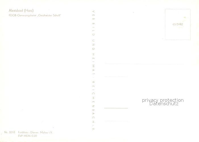 73015307 Alexisbad Harz FDGB Erholungsheim Geschwister Scholl postalisch nicht gelaufen Erhaltung siehe scans [WerneD78] KatCode: 11110015085145