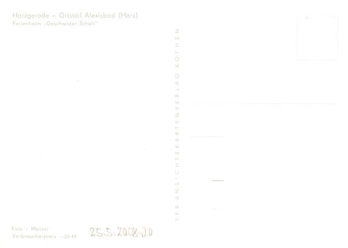 73892493 Alexisbad Harz Ferienheim Geschwister Scholl postalisch nicht gelaufen Erhaltung siehe scans [WerneD78] KatCode: 11110015085145