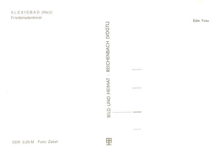 73891505 Alexisbad Harz Friedensdenkmal postalisch nicht gelaufen Erhaltung siehe scans [WerneD78] KatCode: 11110015085145