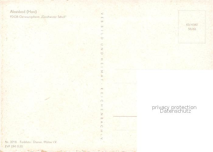 73227620 Alexisbad Harz Genesungsheim Geschwister Scholl postalisch nicht gelaufen Erhaltung siehe scans [NatalD47] KatCode: 11110015085145