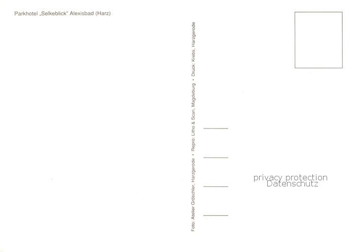 73784930 Alexisbad Harz Parkhotel Selkeblick postalisch nicht gelaufen Erhaltung siehe scans [FriedD77] KatCode: 11110015085145