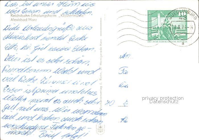 72134307 alte Postkarte Alexisbad Harz Reichsbahn- Erholungsheim Klostermuehle postalisch gelaufen Erhaltung siehe scans KatCode: 11110015085145