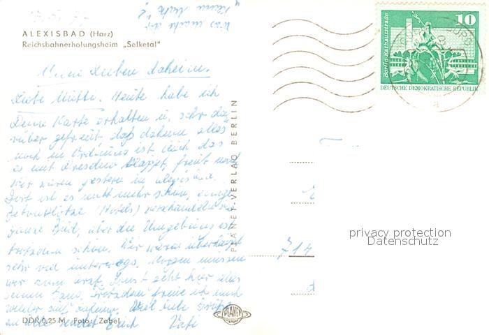 73135563 alte Postkarte Alexisbad Harz Reichsbahnerholungsheim Selketal postalisch gelaufen Erhaltung siehe scans [FriedD77] KatCode: 11110015085145
