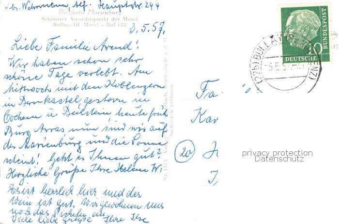 73810797 alte Postkarte Alf Bullay Mosel Berghotel Marienburg Fliegeraufnahme postalisch gelaufen Erhaltung siehe scans [WerneD78] KatCode: 11110007135001