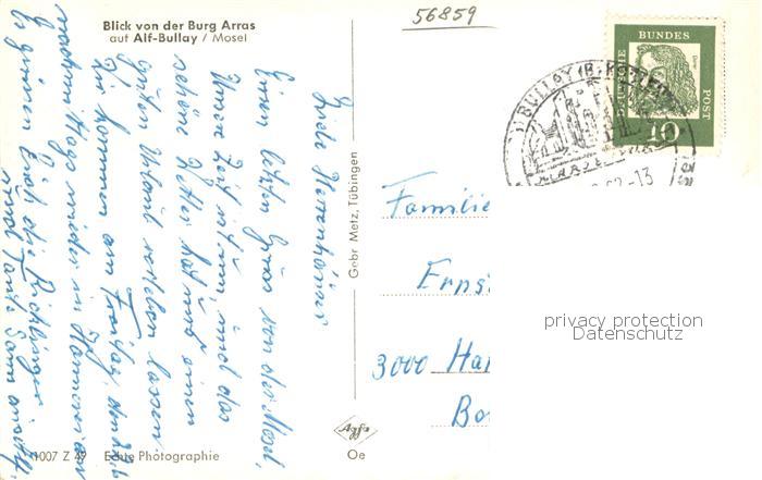 73762529 alte Postkarte Alf Bullay Mosel Blick von der Burg Arras postalisch gelaufen Erhaltung siehe scans [WerneD78] KatCode: 11110007135001