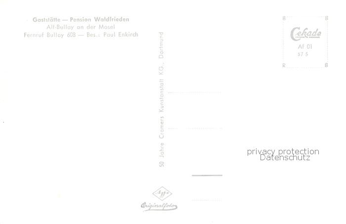 73797408 Alf Bullay Mosel Gaststaette Pension Waldfrieden postalisch nicht gelaufen Erhaltung siehe scans [WerneD78] KatCode: 11110007135001