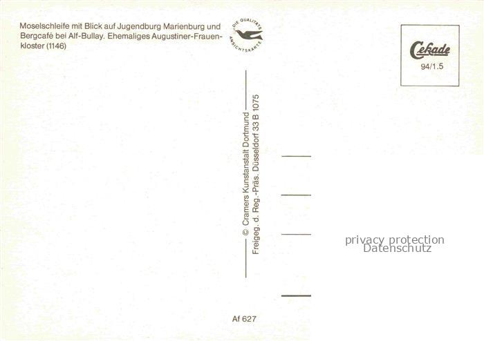 74027561 Alf Bullay Mosel Moselschleife mit Blick auf Jugendburg Marienburg und Bergcafé Ehemaliges Augustiner-Frauenkloster postalisch nicht gelaufen Fliegeraufnahme Erhaltung siehe scans [FriedD77] KatCode: 11110007135001