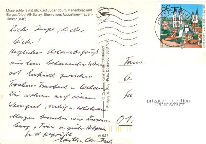 Alf Bullay Mosel Moselschleife mit Jugendburg Marienburg und Bergcafe Ehem Augus