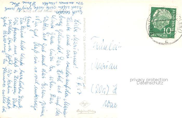 73810805 alte Postkarte Alf Bullay Mosel Partie an der Mosel mit Faehre postalisch gelaufen Erhaltung siehe scans [WerneD78] KatCode: 11110007135001