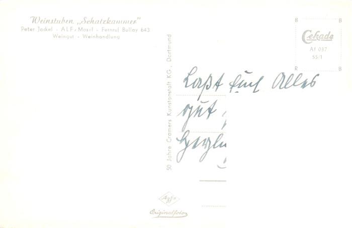 73885673 Alf Bullay Mosel Weinstube Schatzkammer postalisch nicht gelaufen Erhaltung siehe scans [FriedD77] KatCode: 11110007135001
