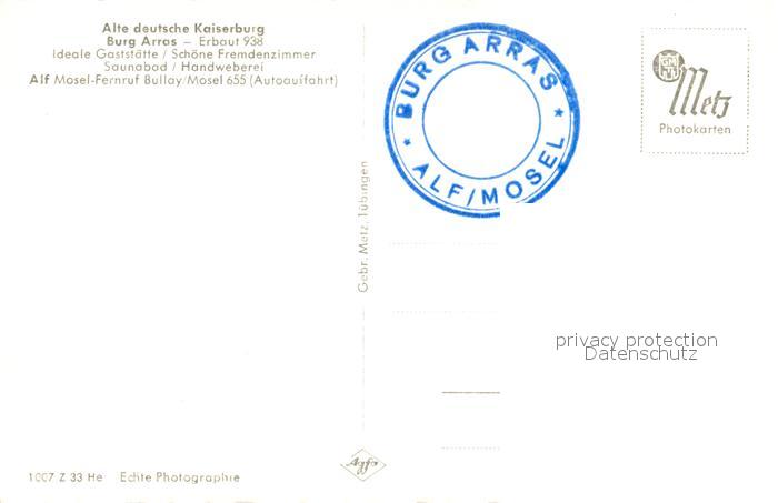 73563873 Alf Mosel Burg-Arras Kaiserburg postalisch nicht gelaufen Erhaltung siehe scans [LiesaD40] KatCode: 11110007135001