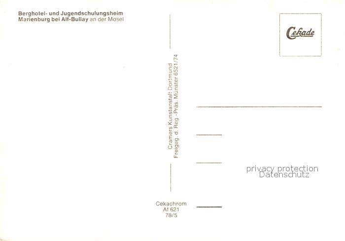 72892874 Alf Mosel Fliegeraufnahme Berghotel Jugensdheim Moselbruecke postalisch nicht gelaufen Erhaltung siehe scans [AndreD76] KatCode: 11110007135001