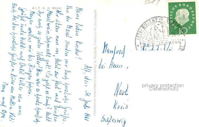 43350562 alte Postkarte Alf Mosel Hauptstrasse Hotel zur Post postalisch gelaufen Erhaltung siehe scans [FriedD77] KatCode: 11110007135001