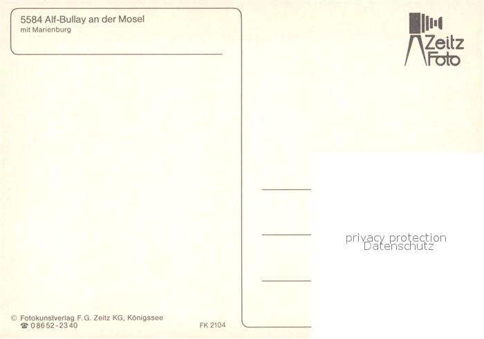 73177387 Alf Mosel Landschaftspanorama mit Marienburg Weinberge postalisch nicht gelaufen Erhaltung siehe scans [FriedD77] KatCode: 11110007135001