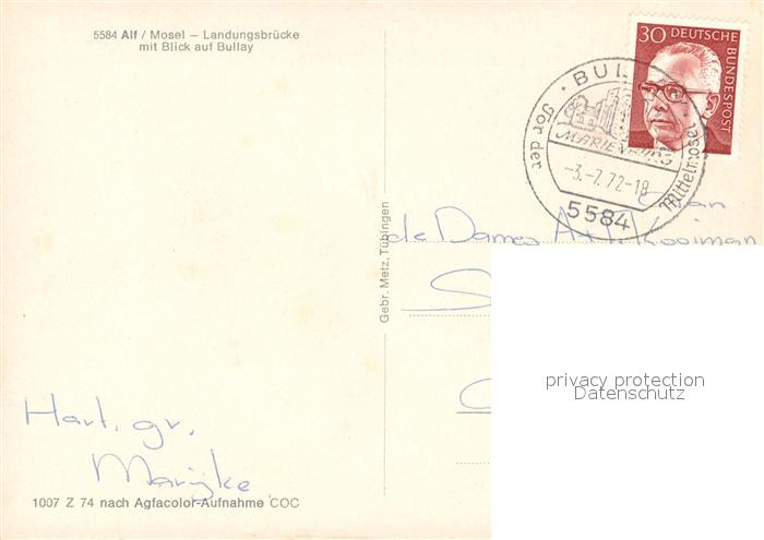 73308209 alte Postkarte Alf Mosel Landungsbruecke mit Bullay postalisch gelaufen Erhaltung siehe scans [LiesaD40] KatCode: 11110007135001
