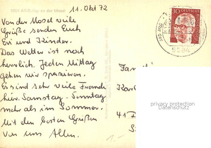 73310166 alte Postkarte Alf Mosel mit Bullay Moselbruecke Weinberge postalisch gelaufen Erhaltung siehe scans [FriedD77] KatCode: 11110007135001