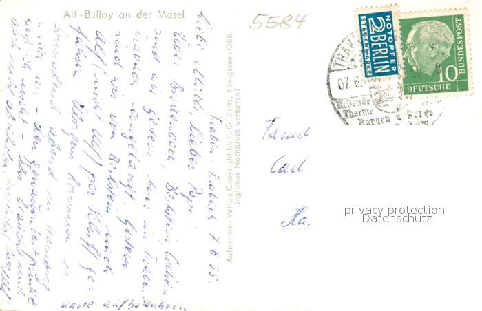 73559677 alte Postkarte Alf Mosel Panorama Moseltal mit Alf und Bullay postalisch gelaufen Erhaltung siehe scans [FriedD77] KatCode: 11110007135001