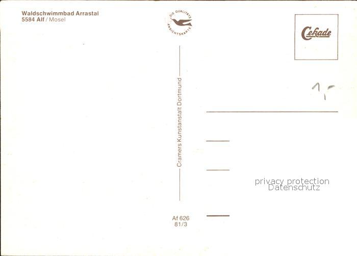 72338315 Alf Mosel Waldschwimmbad Arrastal postalisch nicht gelaufen Erhaltung siehe scans KatCode: 11110007135001