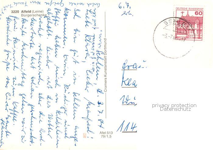 73859232 alte Postkarte Alfeld Leine Buergerschenke postalisch gelaufen Erhaltung siehe scans [WerneD78] KatCode: 11110003254002