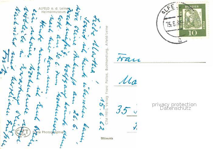 72790755 alte Postkarte Alfeld Leine Heimatmuseum postalisch gelaufen Erhaltung siehe scans [AndreD76] KatCode: 11110003254002