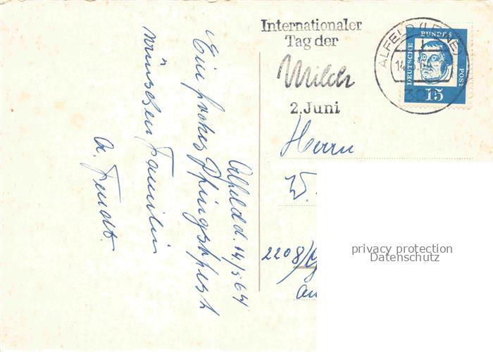 74023903 alte Postkarte Alfeld Leine Hildesheim Leinstr Gymnasium Postamt Heimatmuseum Leinebruecke Fillerturm Berufsschule Freibad postalisch gelaufen Erhaltung siehe scans [WerneD78] KatCode: 11110003254002