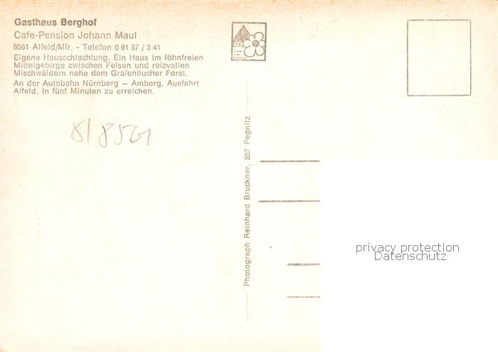 73866284 Alfeld Mittelfranken Gasthaus Beerghof Gastraeume Ortsansicht postalisch nicht gelaufen Erhaltung siehe scans [WerneD78] KatCode: 11110009574111