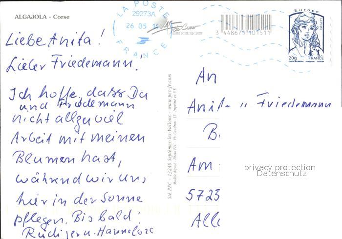 12509945 carte postale Algajola Stadtansicht Strand postalisch gelaufen Erhaltung siehe scans KatCode: 1117002B52B010