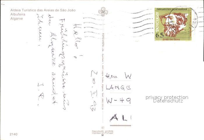 old postcard Algarve Areias de Sao Joao Albufeira postalisch gelaufen Erhaltung siehe scans
