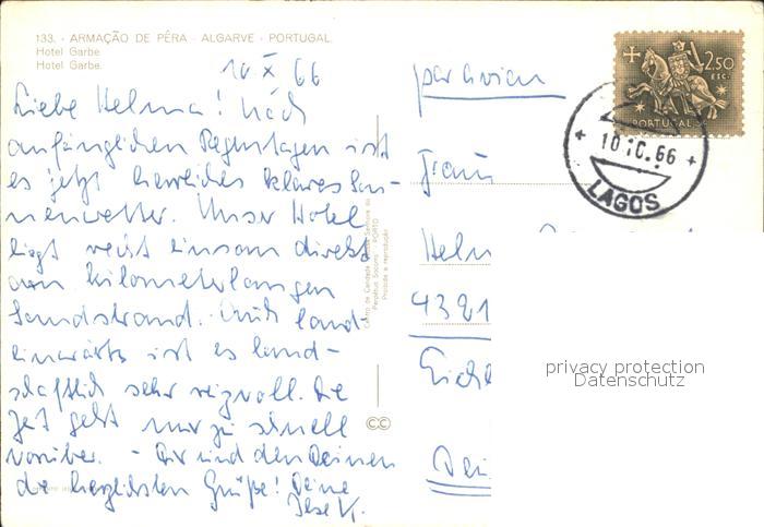 old postcard Algarve Armacao de Pera Hotel Garve postalisch gelaufen Erhaltung siehe scans