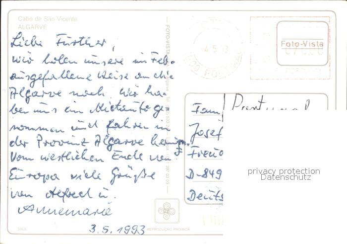 Algarve Cabo de Sao Vicente Fliegeraufnahme postalisch nicht gelaufen Erhaltung siehe scans