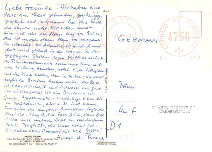 old postcard Algarve Fliegeraufnahme Hotel Viking postalisch gelaufen Erhaltung siehe scans [AndreD76]