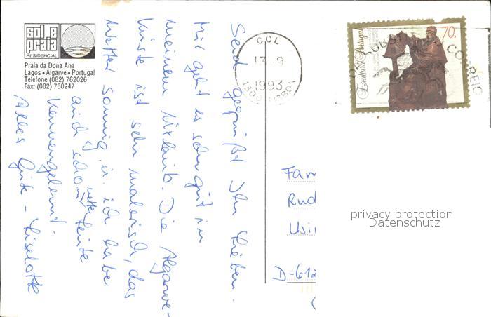 old postcard Algarve Lagos Praia Dona Ana postalisch gelaufen Erhaltung siehe scans