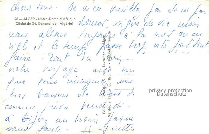 74014603 ALGER Algerie Notre Dame d’Afrique postalisch nicht gelaufen Erhaltung siehe scans [FriedD77] KatCode: 18030