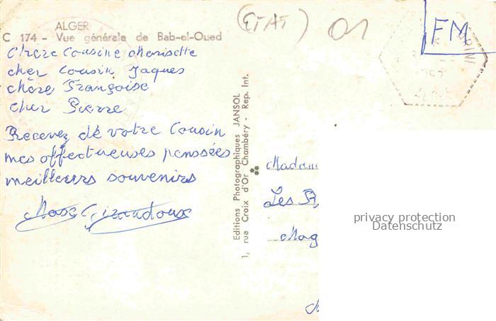 74091363 old postcard ALGER Algerie Vue generale de Bab-el-Oued postalisch gelaufen Erhaltung siehe scans [WerneD78] KatCode: 18030