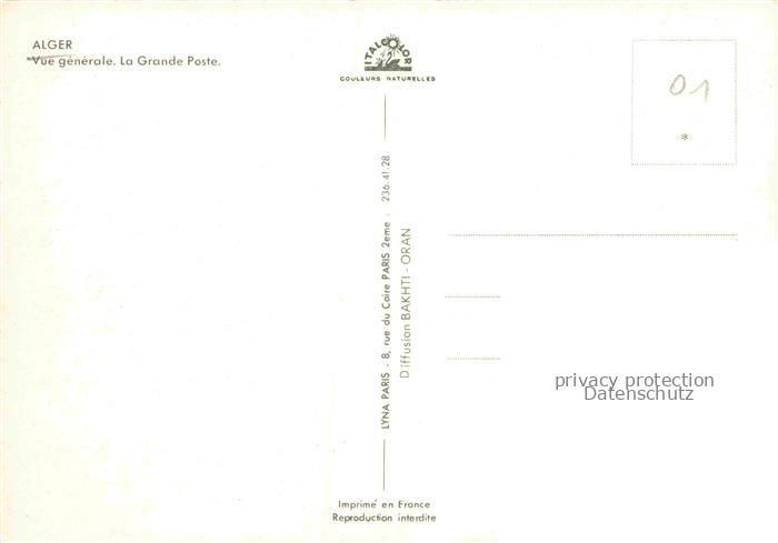 74142017 ALGER Algerie Vue generale La Grande Poste postalisch nicht gelaufen Erhaltung siehe scans [WerneD78] KatCode: 18030