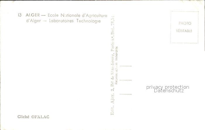 Alger Algerien Ecole Nationale d Agriculture Laborratories Technologie postalisch nicht gelaufen Erhaltung siehe scans
