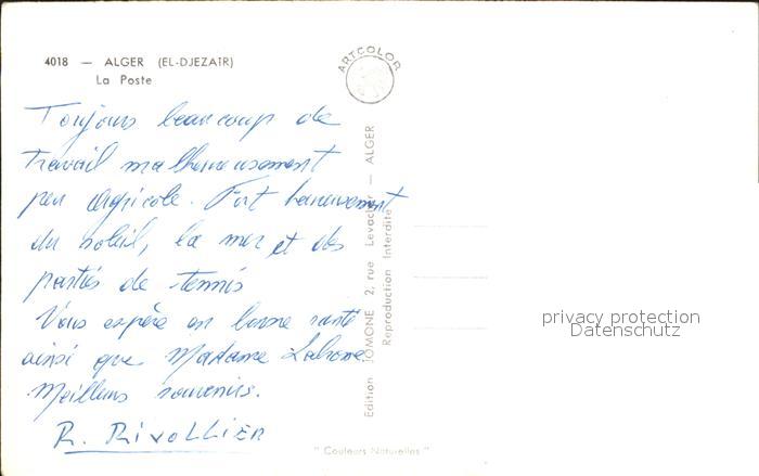 Alger Algerien La Poste postalisch nicht gelaufen Erhaltung siehe scans