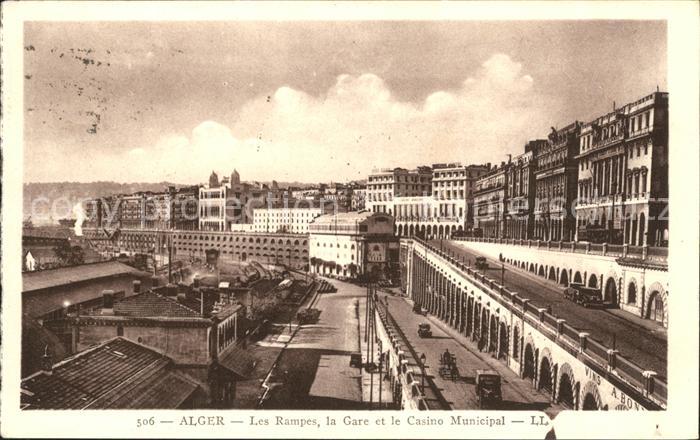 alte Postkarte Alger Algerien Les Rampes La Gare Le Casino postalisch gelaufen Erhaltung siehe scans