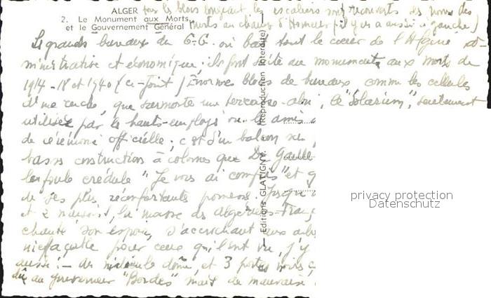 Alger Algerien Monument auy Morts postalisch nicht gelaufen Erhaltung siehe scans