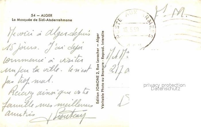 old postcard Alger Algerien Mosquee de Sidi Abderrahmane postalisch gelaufen Erhaltung siehe scans [FriedD77]