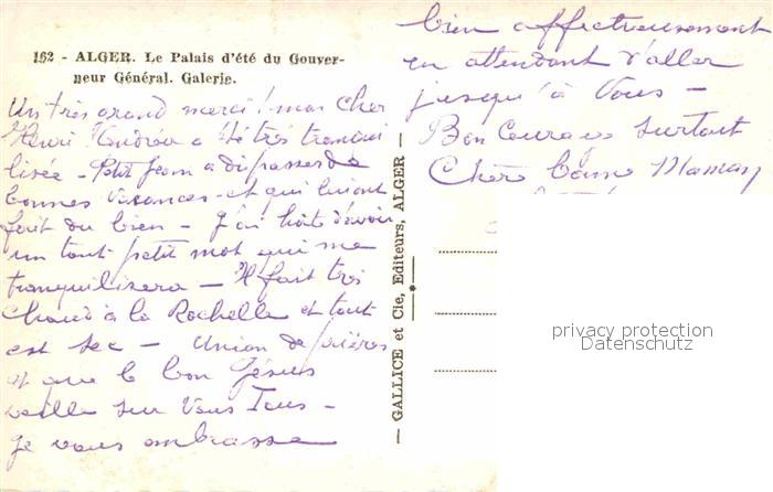 Alger Algerien Palais d ete du Gouverneur General Galerie postalisch nicht gelaufen Erhaltung siehe scans [FriedD77]