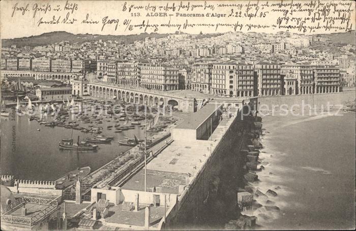 alte Postkarte Alger Algerien Panorama Hafenpartie postalisch gelaufen Erhaltung siehe scans