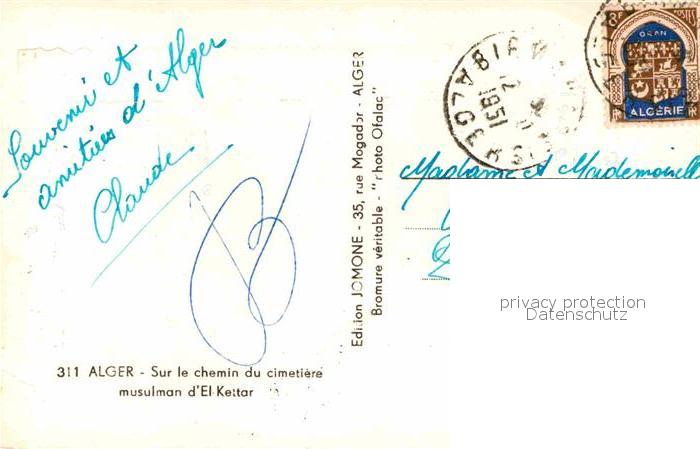 alte Postkarte Alger Algerien Sur le chemin du cimetière musulman d El Kettar postalisch gelaufen Erhaltung siehe scans [FriedD77]