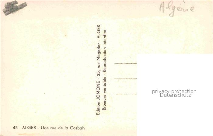 Alger Algerien Une rue de la Casbah postalisch nicht gelaufen Erhaltung siehe scans [AndreD76]